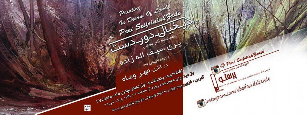 مراسم افتتاحیه ی نمایشگاه آثار نقاشی پری سیف اله زاده در گالری مهروماه روز پنجشنبه 19 بهمن برگزار گردید.این نمایشگاه …